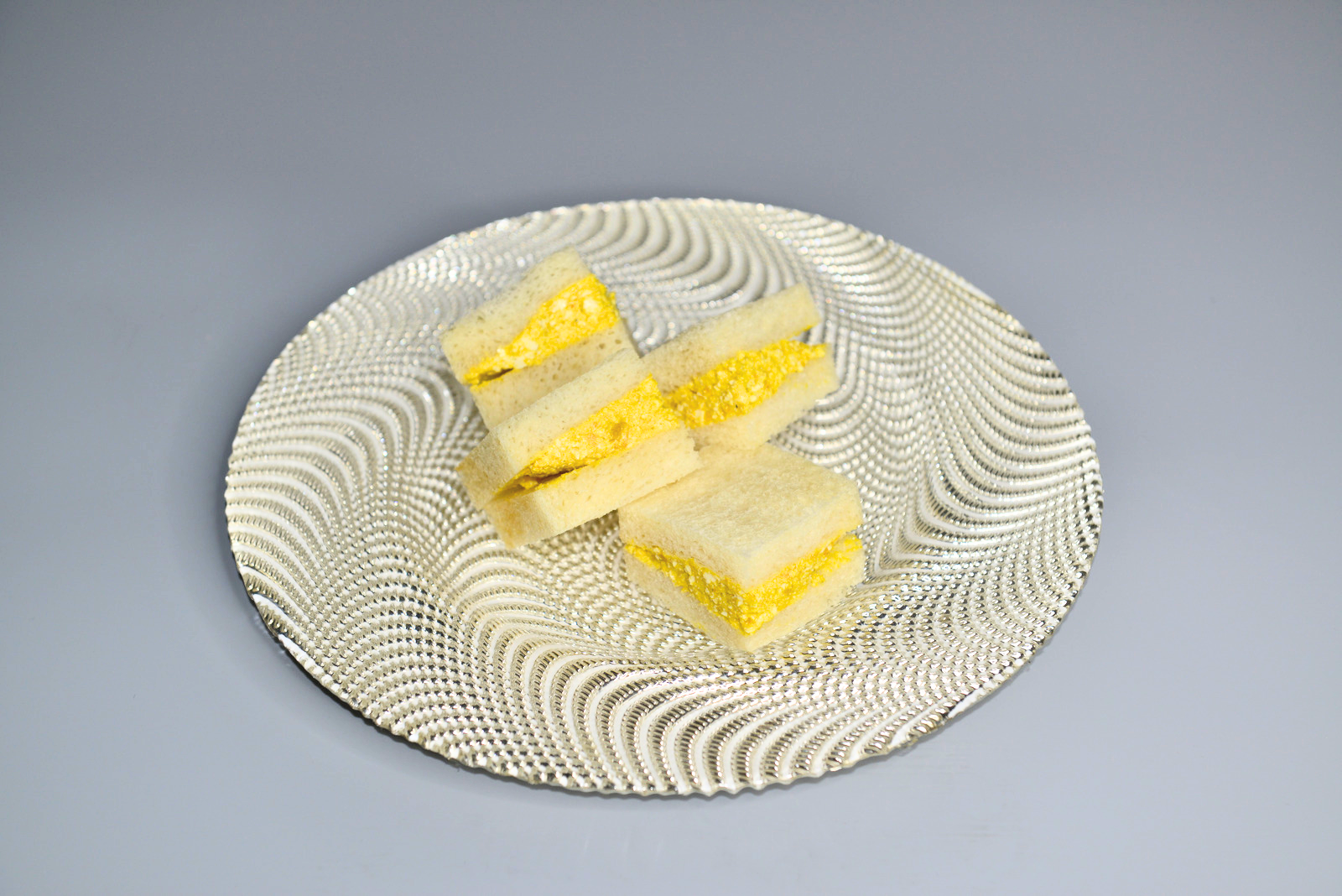 タマゴを使っていないにもかかわらず、まるでタマゴサンドのようなサンドイッチです。冷凍でレンジで解凍、5分後に提供できます。