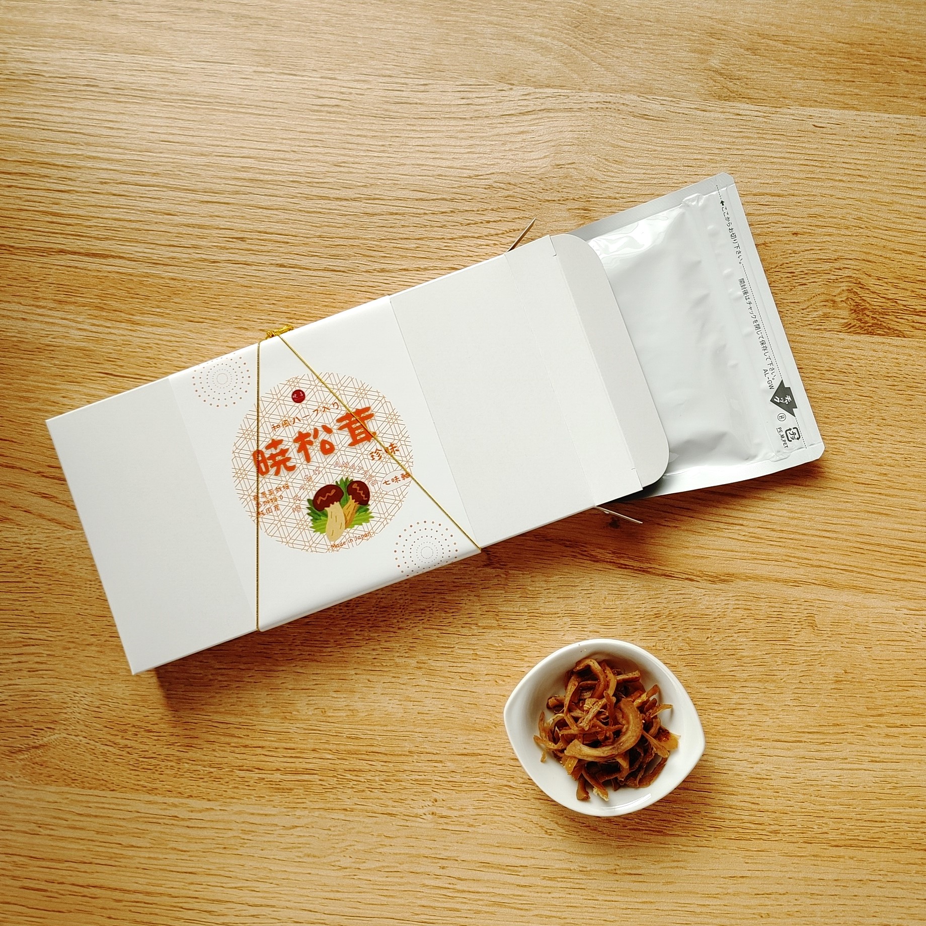 2、保存料・着色料・人工甘味料など添加物不使用、国産の高品質素材のみ厳選し、調味料までこだわり抜いた珍味に仕上げた。無農薬の野菜ミックスも加え、料理やおつまみに無限の美味しさを。