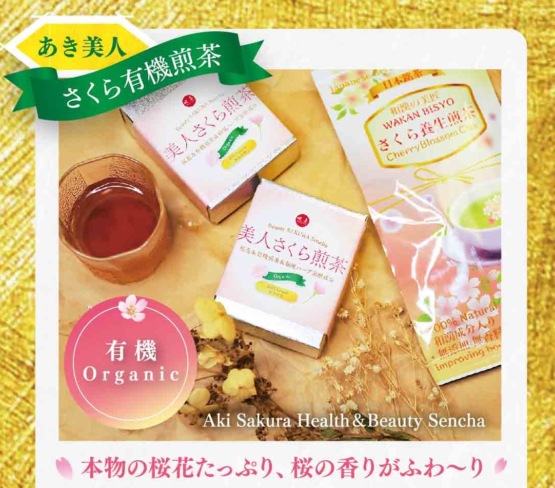 貴重な日本古来よりの和漢素材が織りなす奥深い、美のための桜有機煎茶です♪