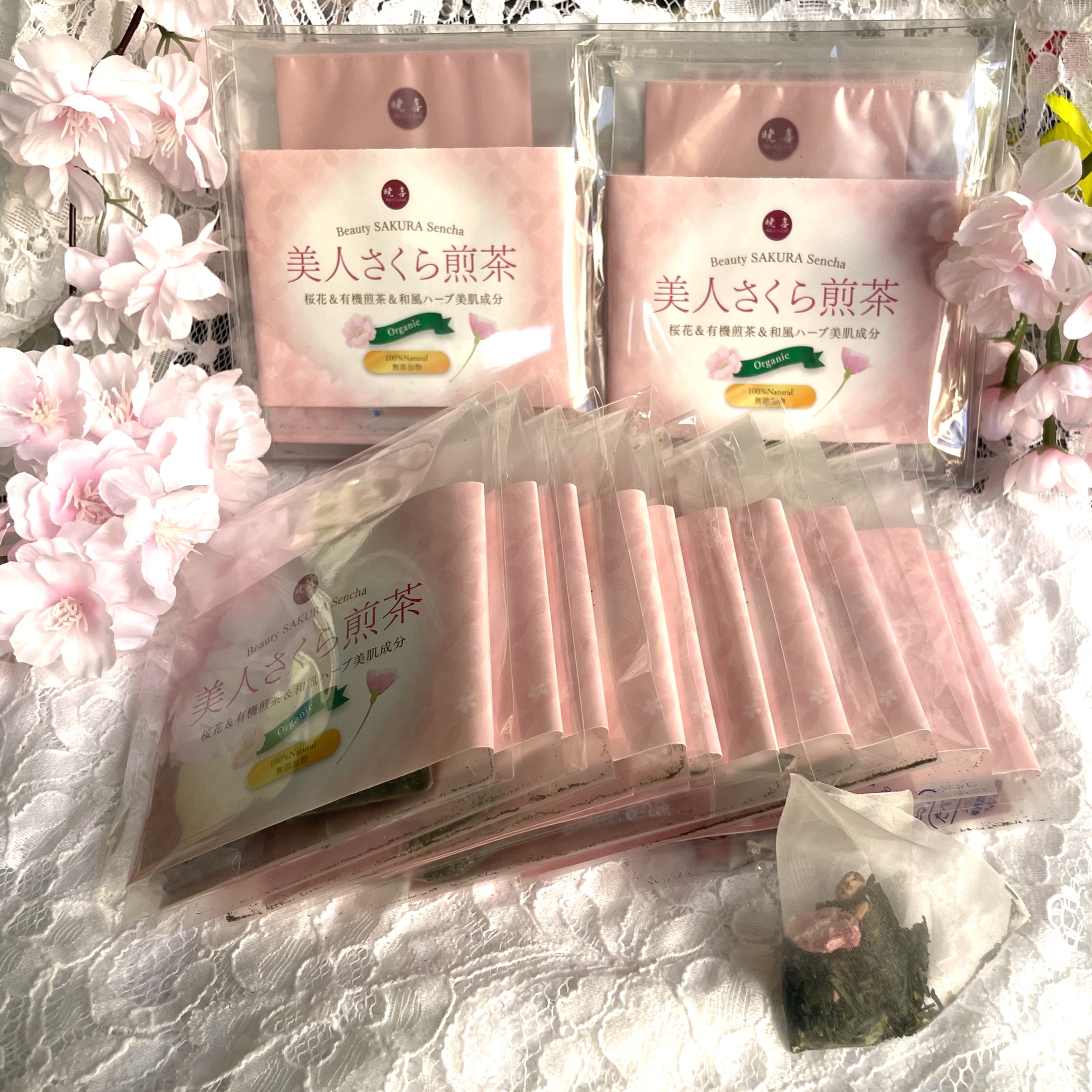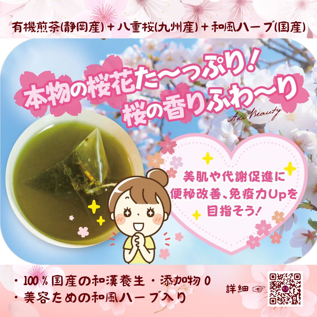 ①、美容ための和風ハーブと優雅香りの桜と有機煎茶の贅沢ブレンド