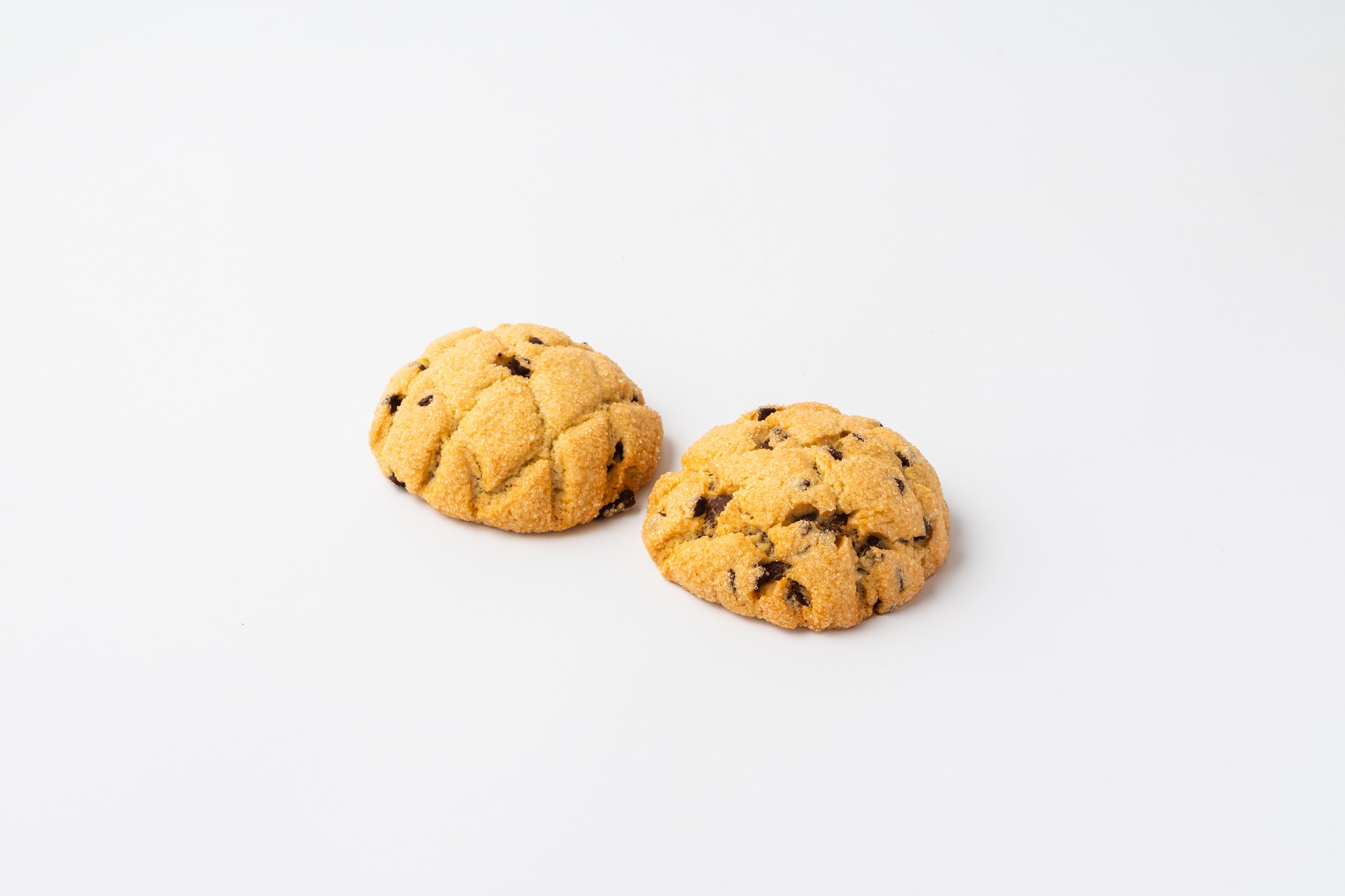 クッキー生地にヴィーガンチョコチップの入ったチョコレート味のメロンパンです。北海道産の小麦粉を使用しています。
